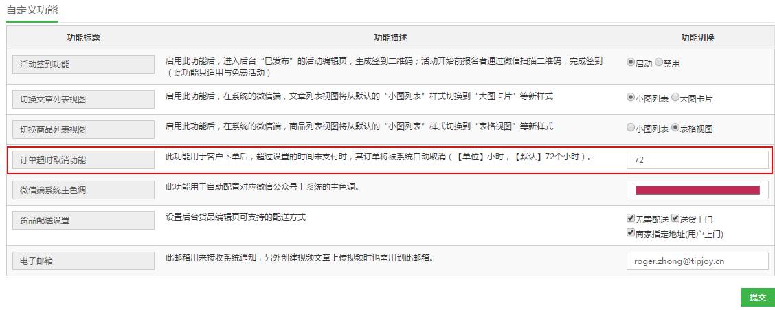 未支付订单超时取消的时间段,可在网站配置页面进行编辑更改,提交后生效。